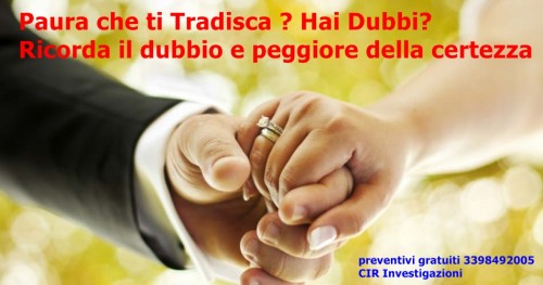 Indagini per infedeltà coniugali massima discrezione e riservatezza! qualora sia riscontrata la relazione extraconiugale, saranno raccolte prove fotografiche e filmate da utilizzare in sede giudiziale per l’addebito di responsabilità al coniuge infedele (separazione con addebito di colpa). N.B.: potrà essere richiesta in sede di giudizio la testimonianza degli investigatori privati che hanno direttamente curato l’indagine. Accertamenti sul lavoro dell’ex coniuge Ricerche finalizzate a dimostrare l’eventuale occupazione dell’ex coniuge e/o la convivenza (more uxorio) con un altro partner. Verifiche sui comportamenti del coniuge